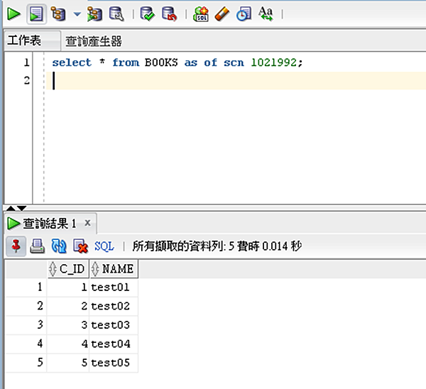 SQL> insert into BOOKS select * from BOOKS as of scn 1021992;
