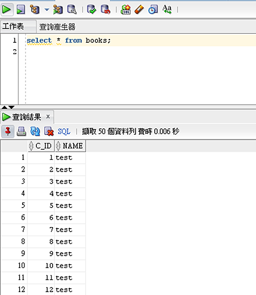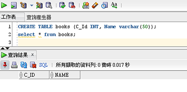 SQL> CREATE TABLE books (C_Id INT, Name varchar(50));